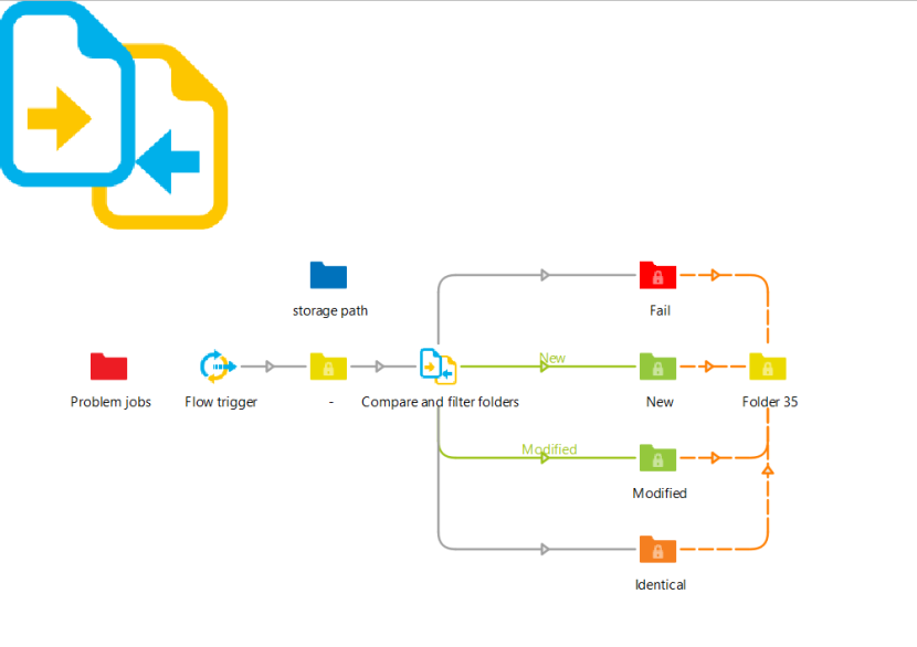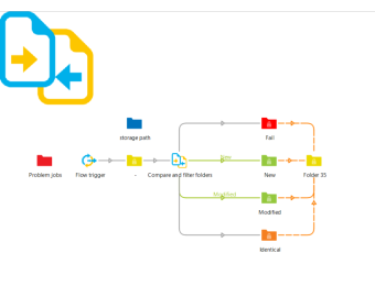 Compare incoming customer folders with previous versions to identify only modified or new files. Route only the changes directly to prepress, skipping unchanged files to save time and reduce errors.
