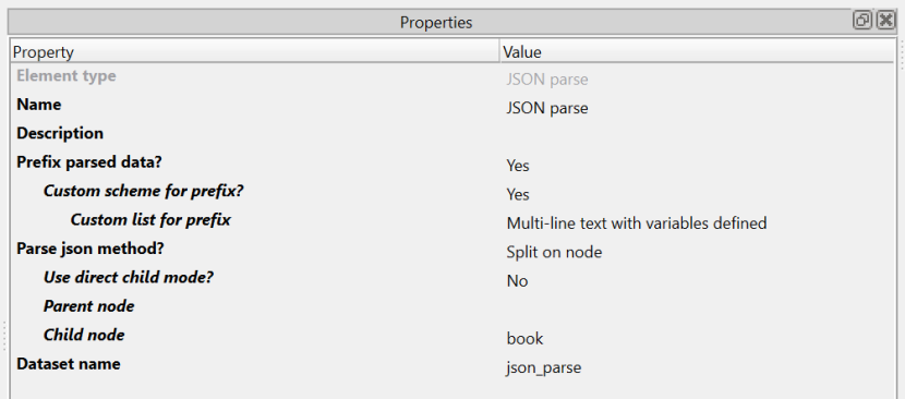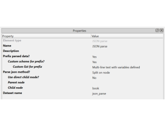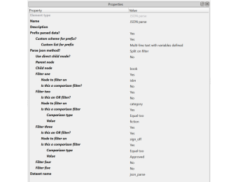 The JSON parse app breaks up JSON on a repeating node element.
