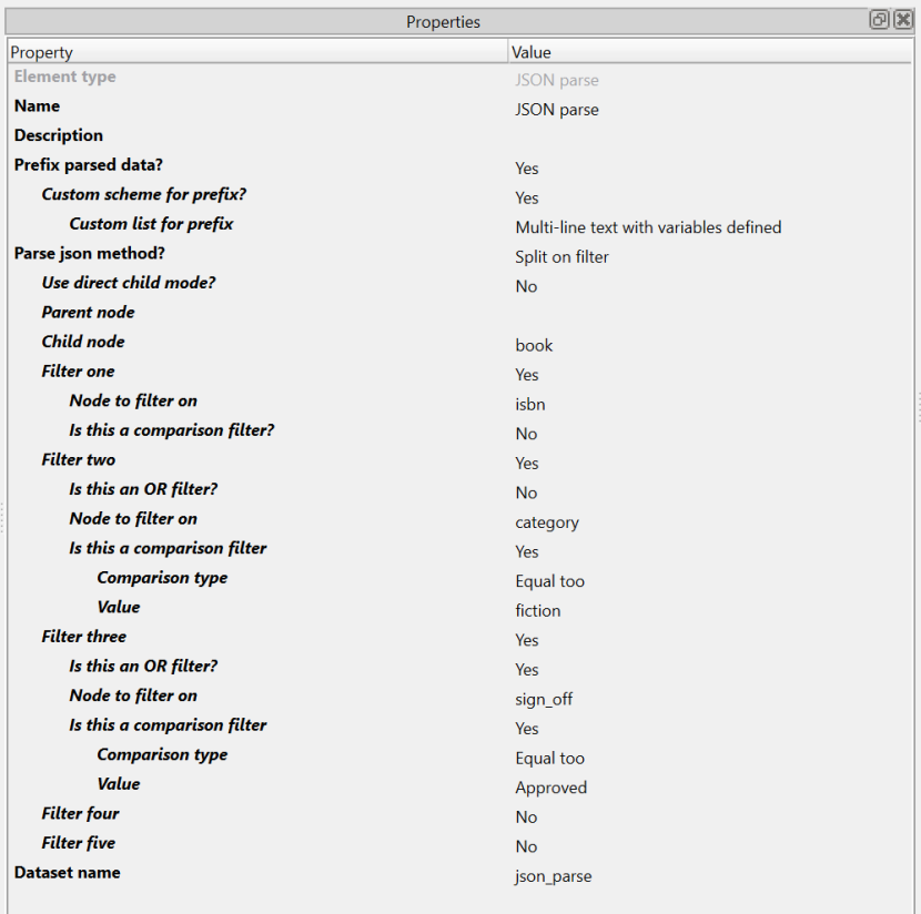 There is the ability to filter based on the presence of a node or nodes. The filtering methodology can look for specific values on the node specified using standard comparison types.