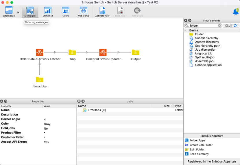 Install the Coreflow app in Switch, drop it into an existing flow, define as a Prepress Workflow Provider, and assign flows to your products.